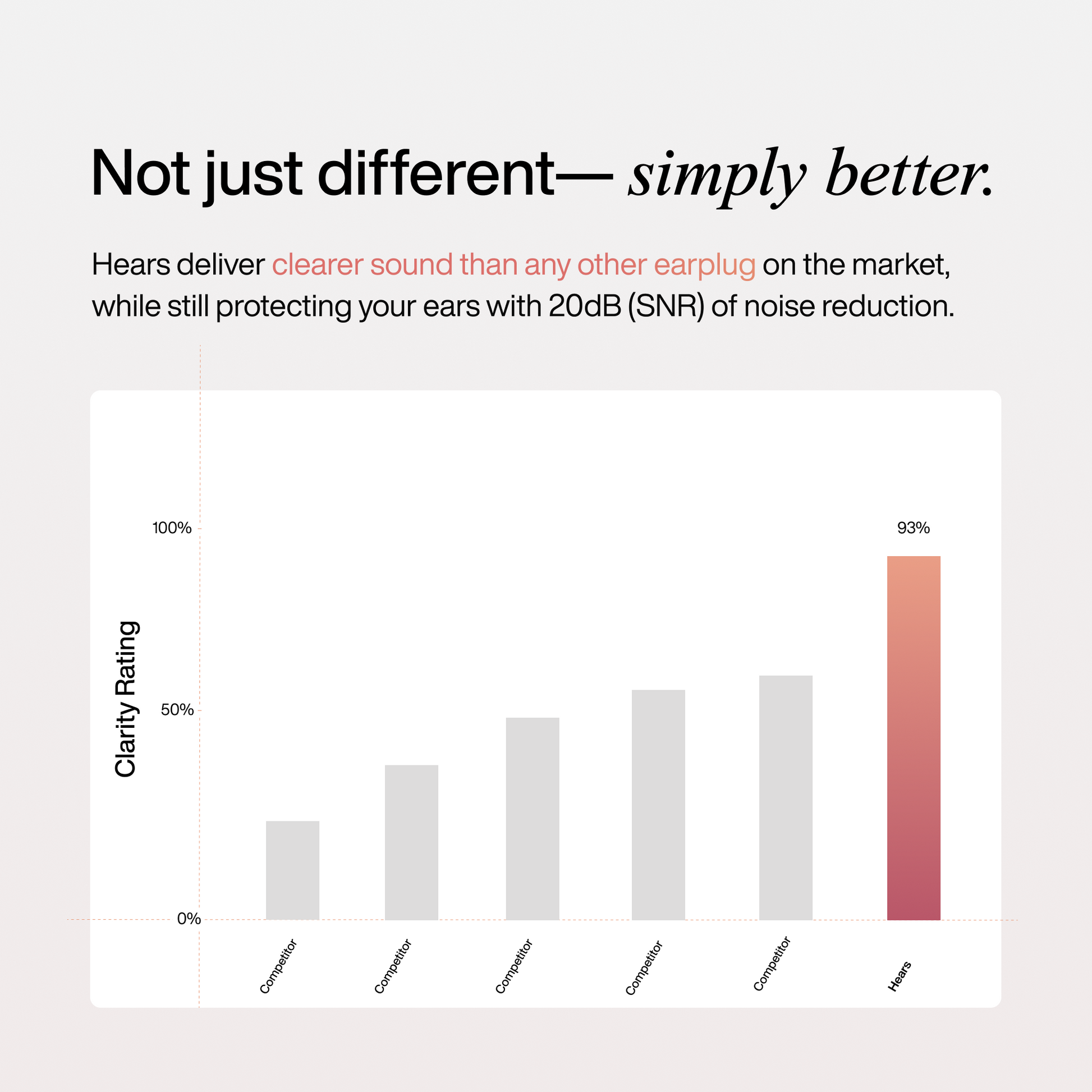 Hears' patented filter technology sets us apart by mimicking an extra set of eardrums, evenly absorbing sound across all frequencies for a more natural hearing experience. Unlike other earplug brands, our filters provide balanced low-frequency attenuation, delivering superior sound clarity and protection.
